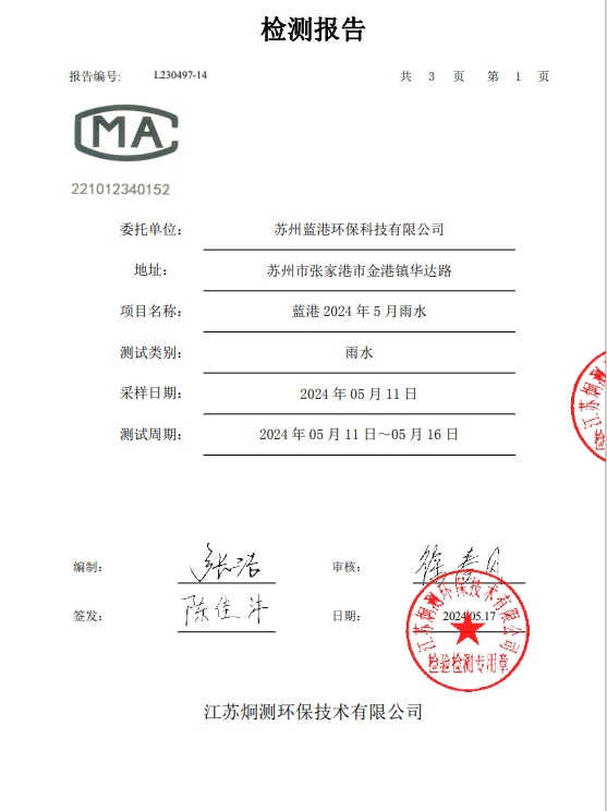 蘇州藍(lán)港環(huán)保科技有限公司檢測(cè)報(bào)告已公示,詳情請(qǐng)查...